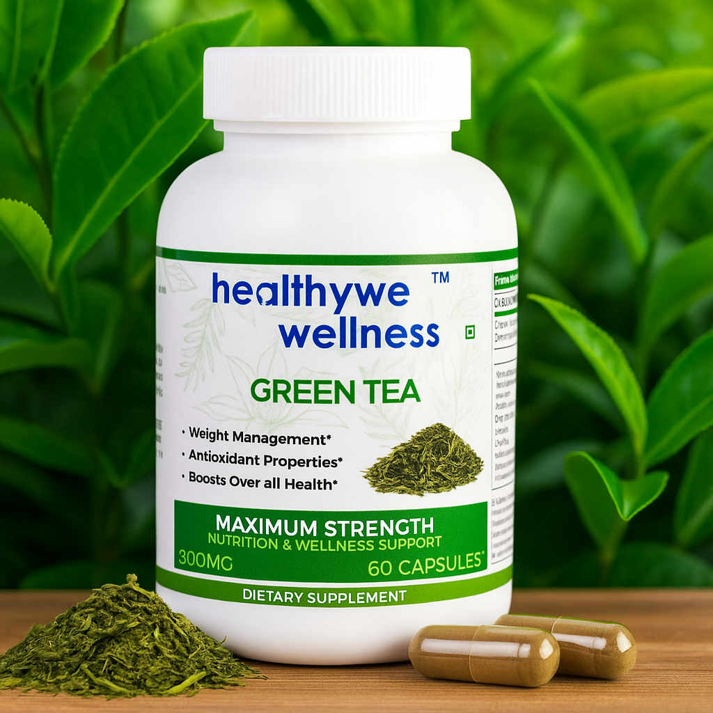 Healthywe Wellness Green Tea Extract 800mg is a premium dietary supplement crafted to promote natural weight management and holistic health. Sourced from high-quality green tea leaves, each capsule is rich in EGCG (Epigallocatechin Gallate) – a potent antioxidant known for its ability to enhance metabolism and support fat-burning processes.