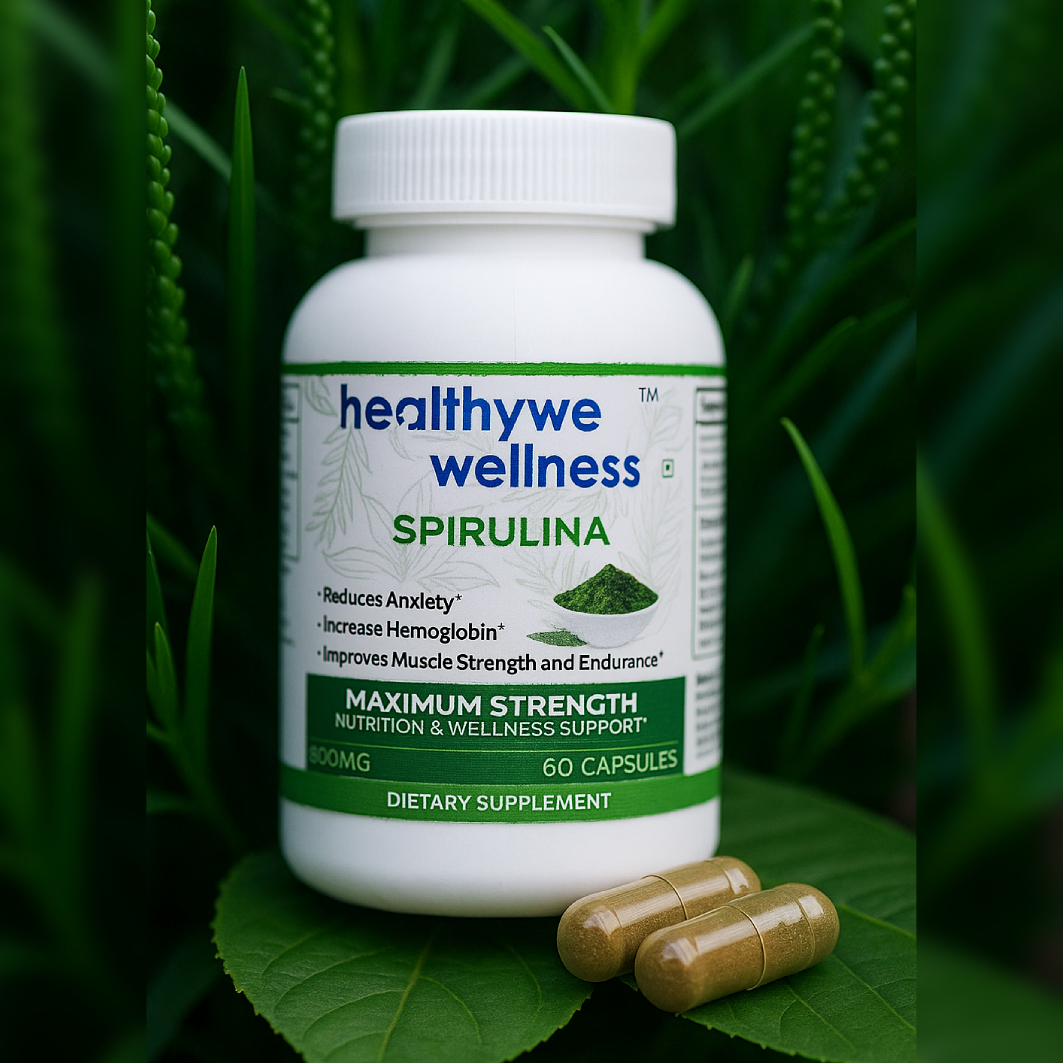 Healthywe Wellness Spirulina 800mg is a powerful superfood supplement made from 100% pure blue-green algae, known for its remarkable health benefits. Spirulina is a natural source of plant-based protein, essential vitamins, and minerals that help nourish your body, boost metabolism, and enhance overall wellness.